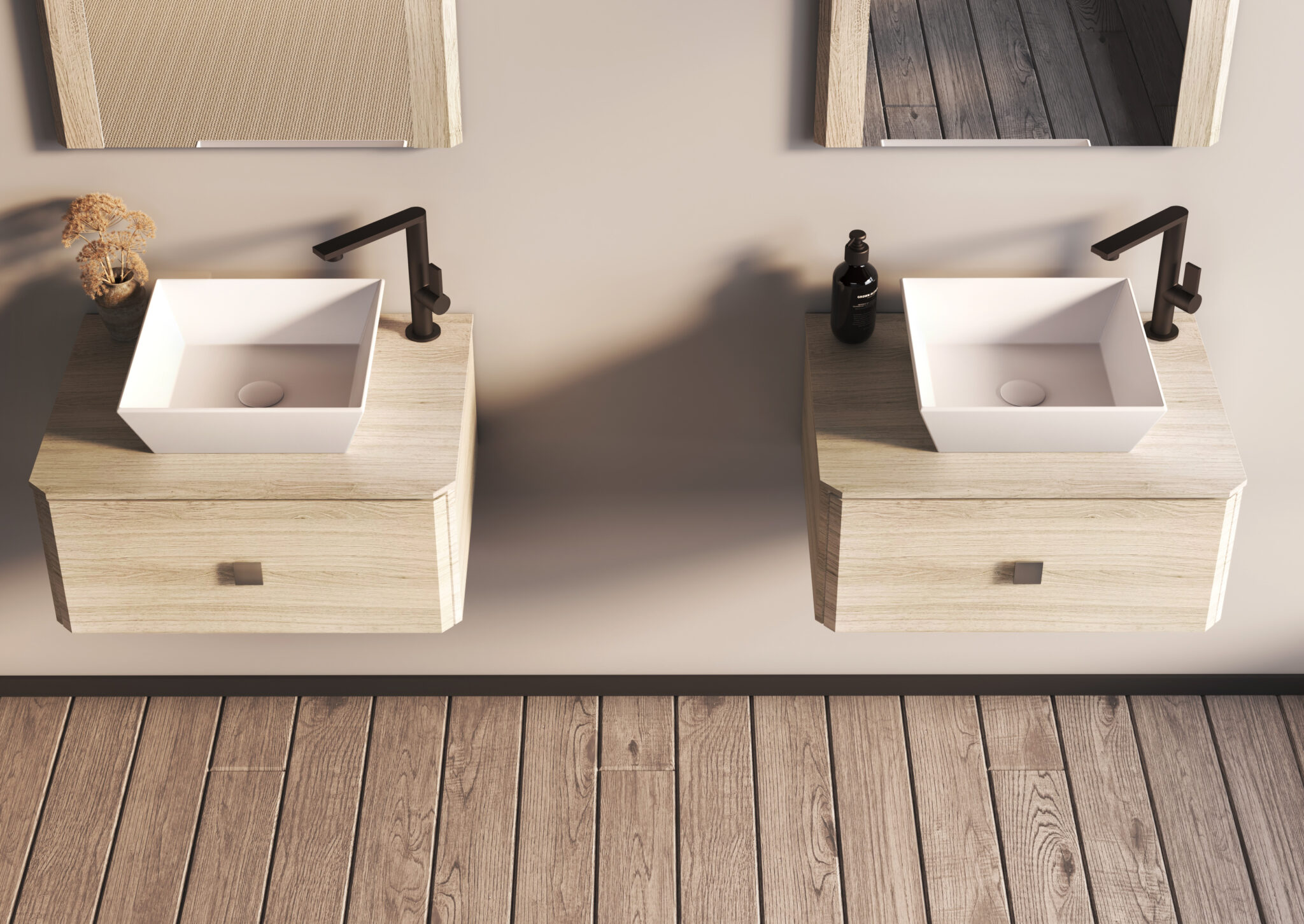 Cleo es un mueble para baño colgante que está disponible en modulaciones de uno y dos cajones. Está sellado y recubierto con una capa de PVC, lo que asegura funcionalidad y diseño.